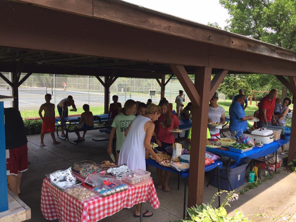 The covered pavilion is available for private rentals, making it the perfect venue for parties and gatherings. It includes pool access and features picnic tables, grills, and a fire pit creating an ideal setting for hosting memorable events.